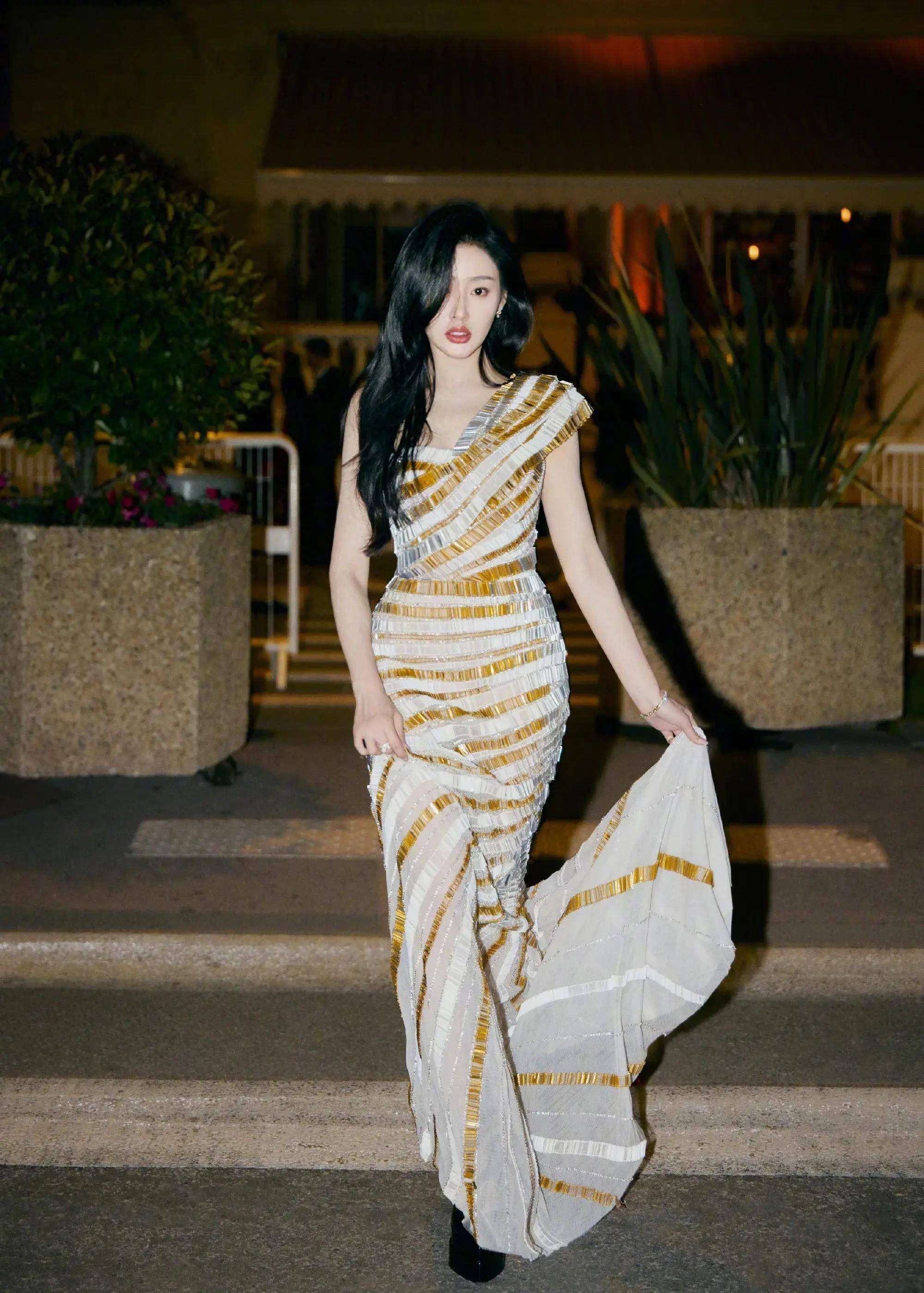 更让人关注的是她当天的造型。宽松的布料层层堆叠,颜色暗沉纹理杂乱,完全不同于她以往精致的形象。许多网友看后纷纷调侃这身打扮像“窗帘布成精”,直言刷新了对红毯时尚的认知下限。
